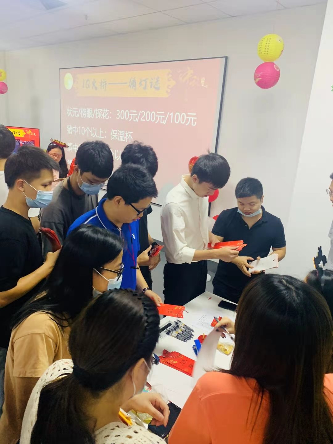 猜燈迷兌獎中~大家手里都拿著一沓燈謎,向著現(xiàn)金大獎出發(fā)!